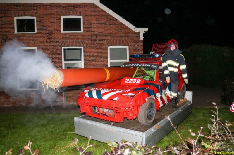 Tuinset in brand in tuin achter woning in Vriescheloo