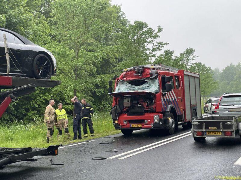 Een brandweerauto op weg naar de grote brand in Uithuizermeeden is zaterdagmorgen in botsing gekomen