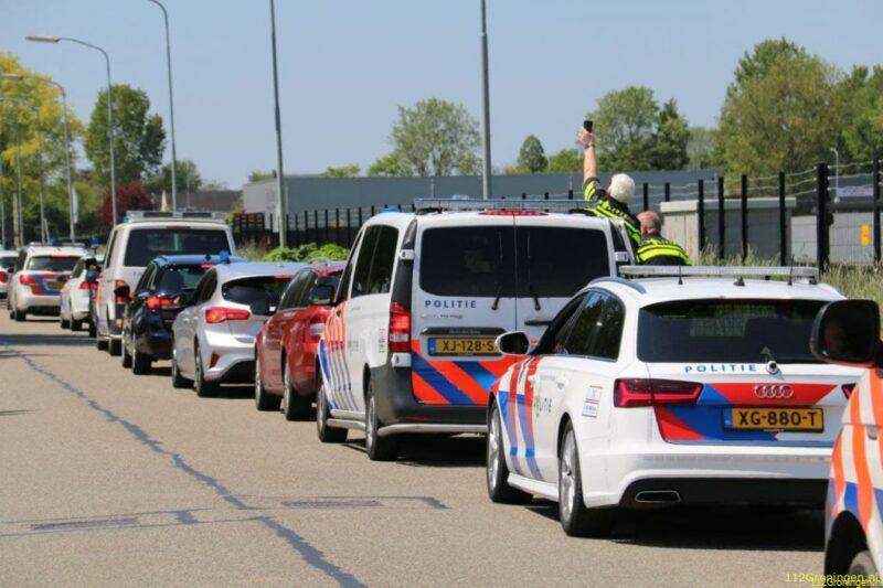 Stoet politievoertuigen brengt eerbetoon aan ernstig zieke collega in Winschoten (Video)