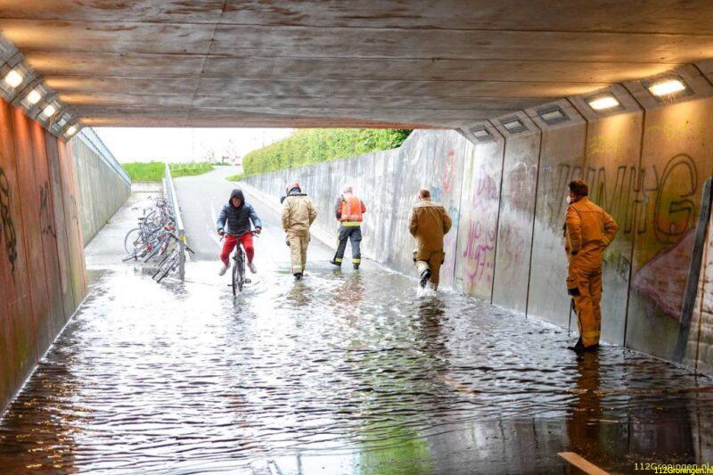 Fietstunnel onder A28 loopt vol met water door regenval