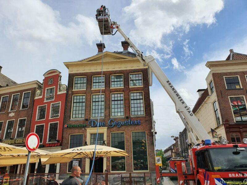 Brand op dak bij ‘Drie Gezusters’ in Groninger binnenstad (Video)