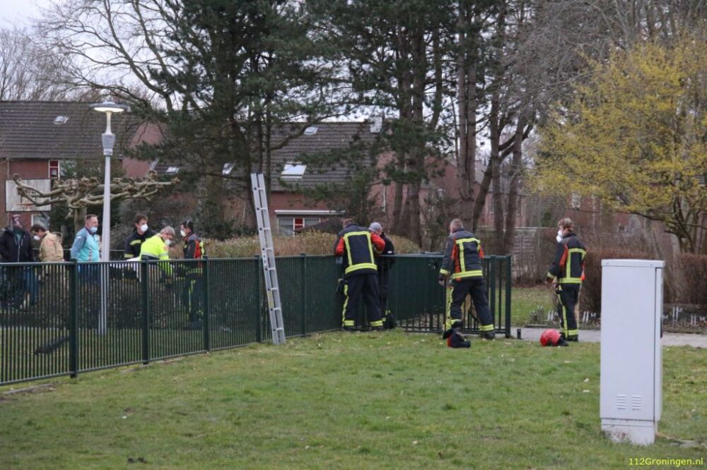 Brandweer assisteert ambulancedienst met openen hekwerk in Veendam
