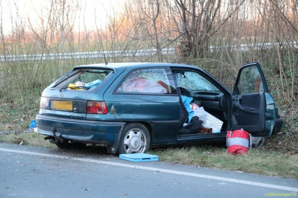 Auto slaat over de kop bij afrit N46 in Groningen (Video)