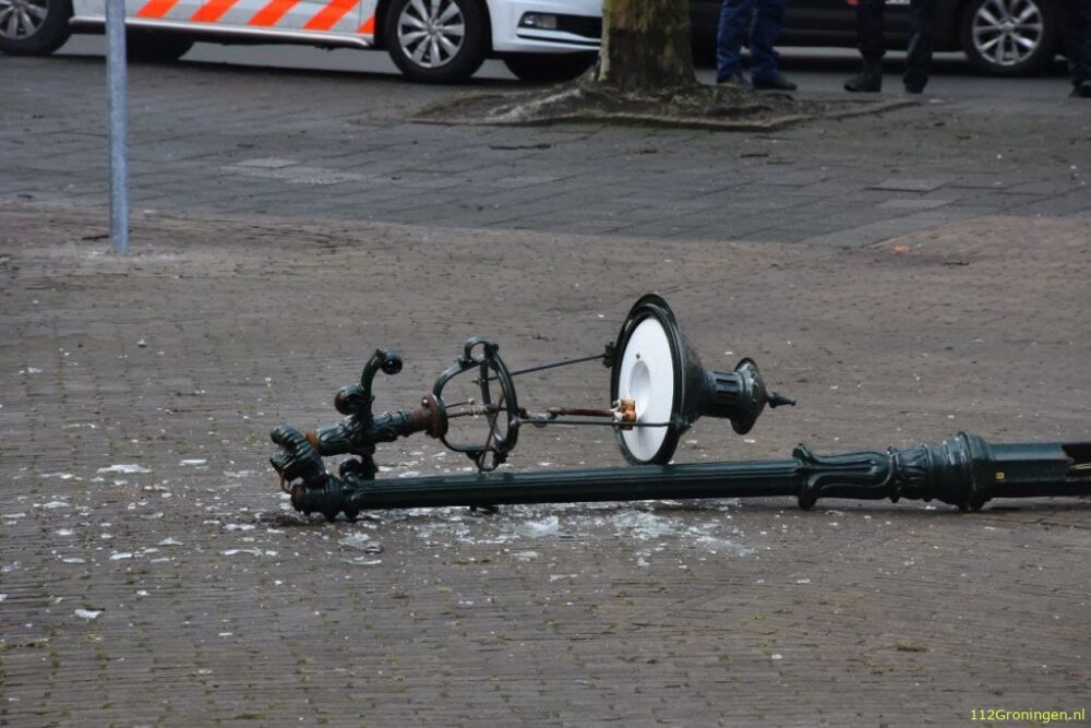 Een pakketbezorger heeft donderdagmorgen bij de Sint Walburgstraat een oude lantaarnpaal omver gereden. De exacte
