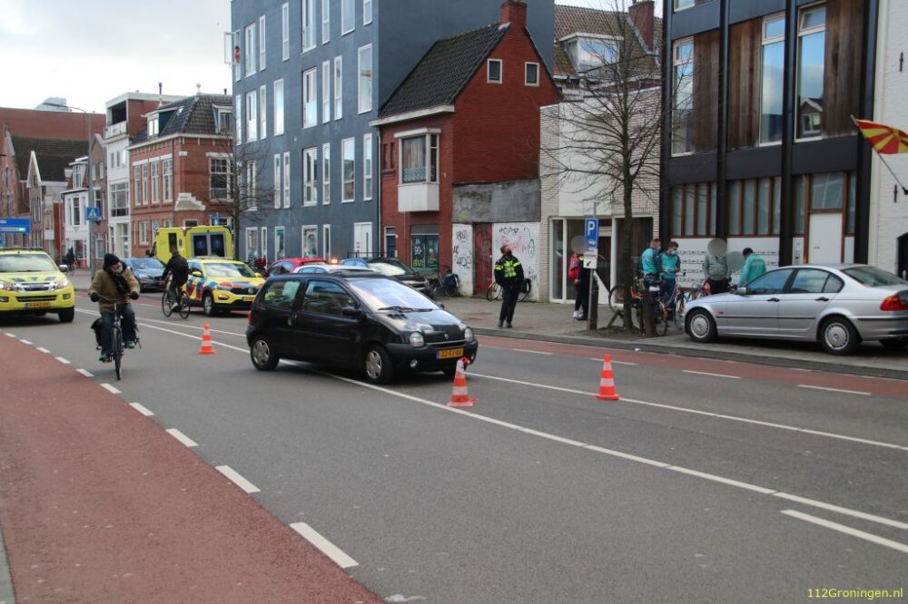 Bij een verkeersongeval op het Boterdiep in de stad Groningen is vrijdagmiddag een fietsster gewond
