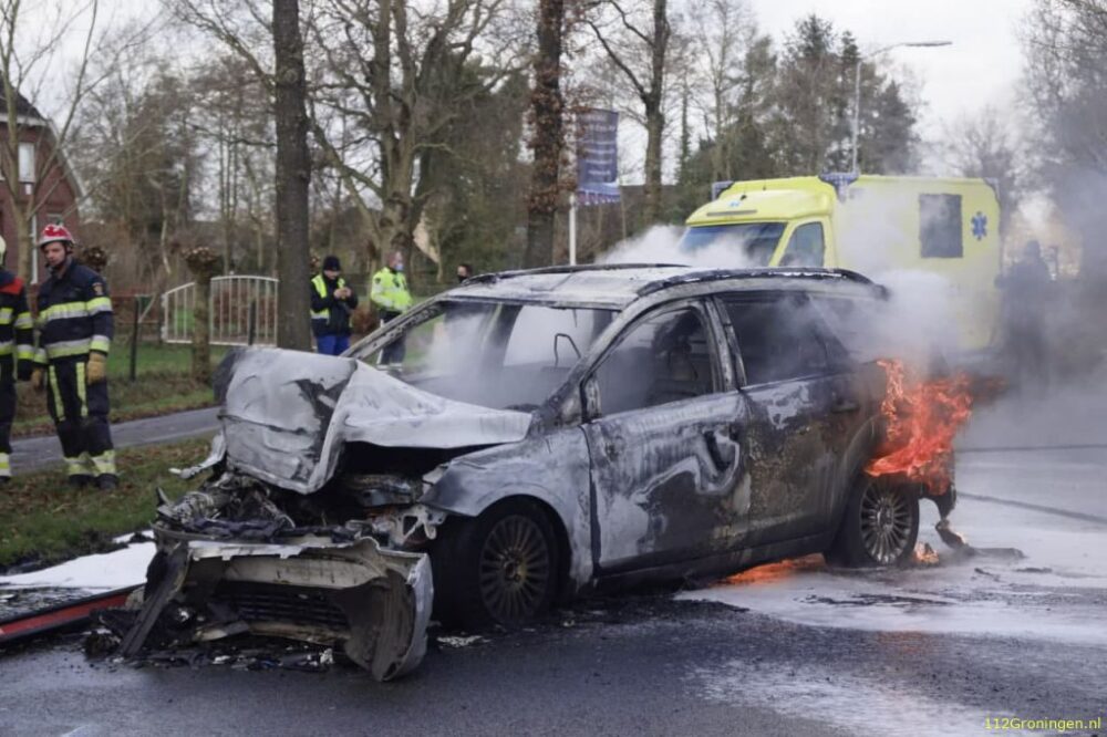 Auto brandt uit na ongeval bij Zevenhuizen (Video)