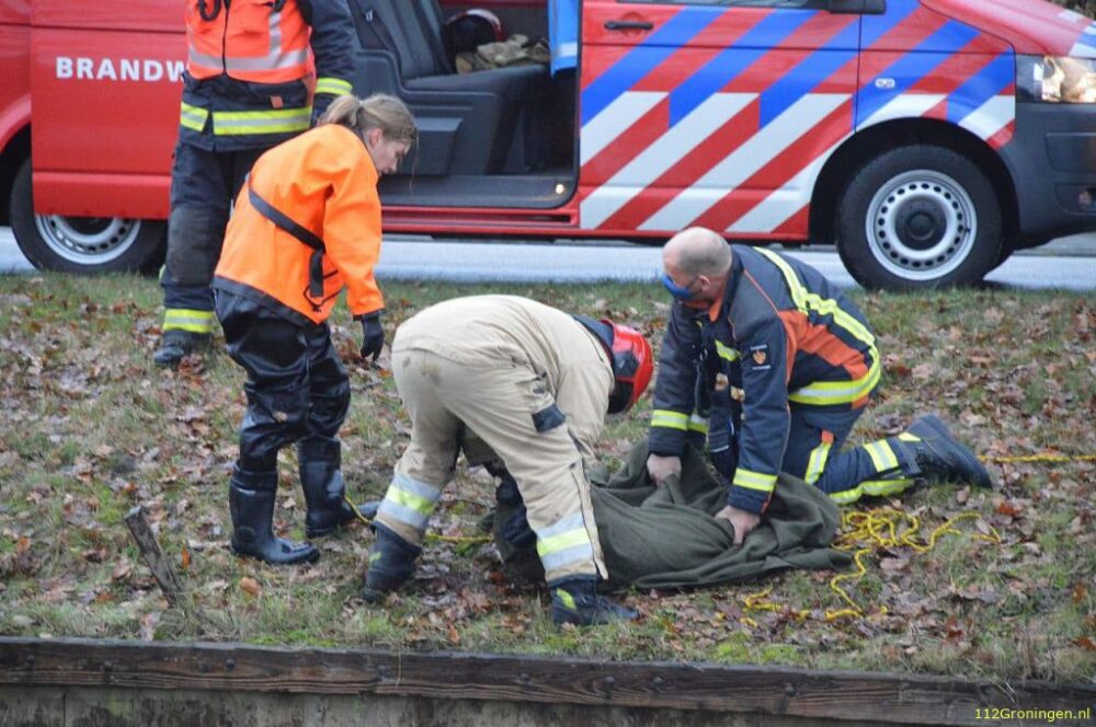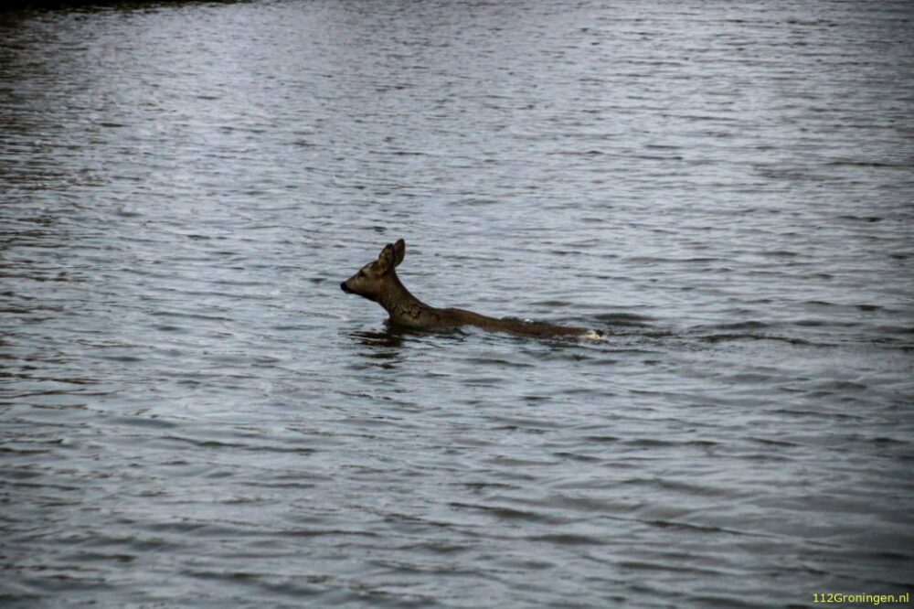 De brandweer van Siddeburen heeft zondagmiddag een ree uit het water gehaald bij Vilapark Schildmeer