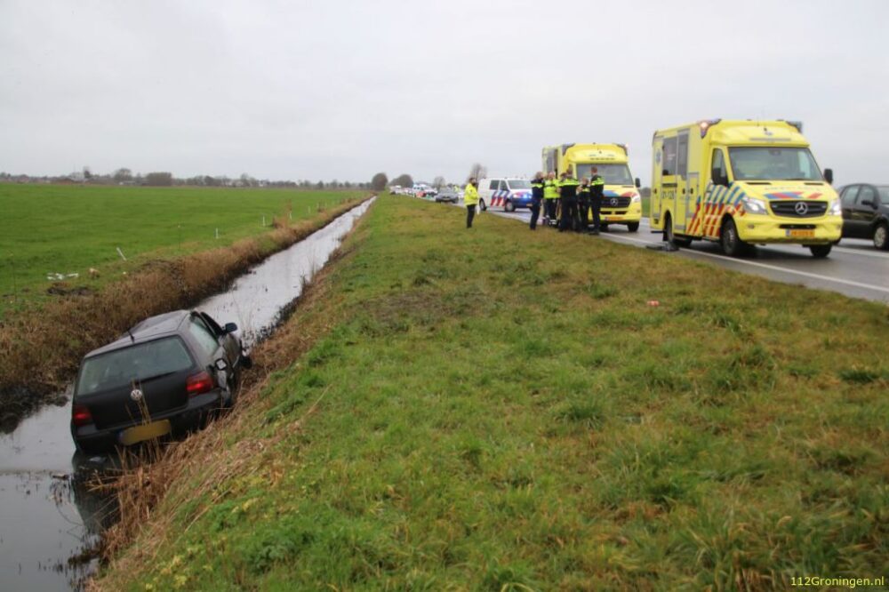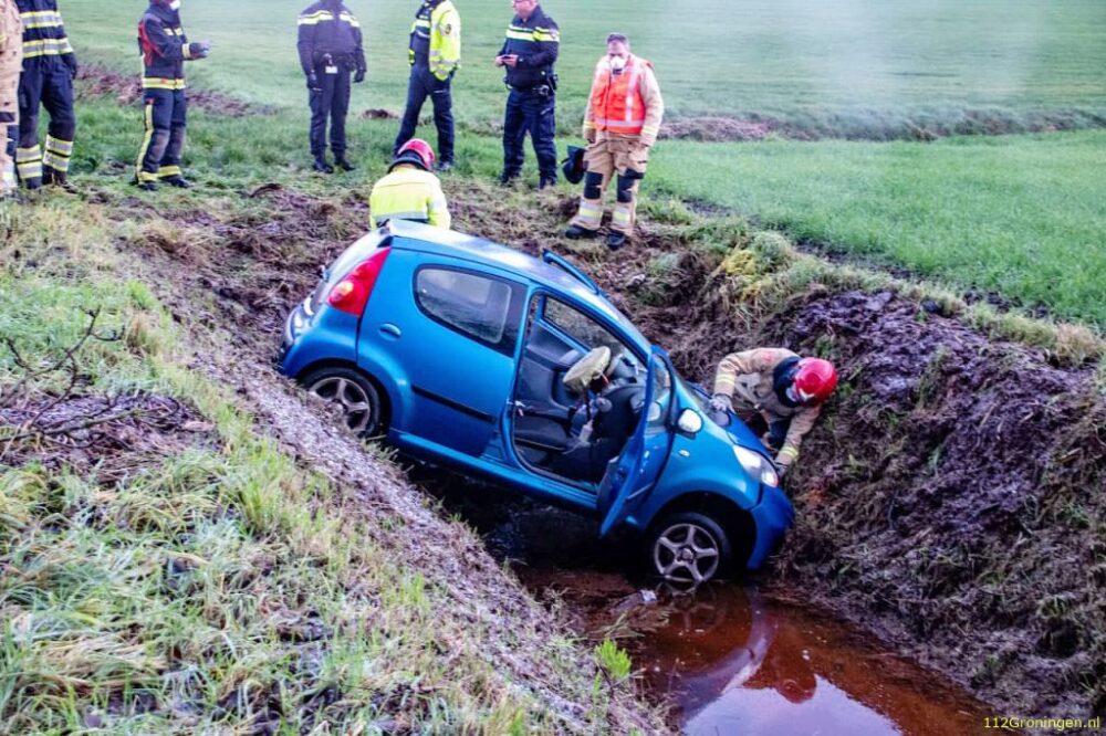 Automobilist belandt in sloot aan de Noordbroeksterweg bij Slochteren