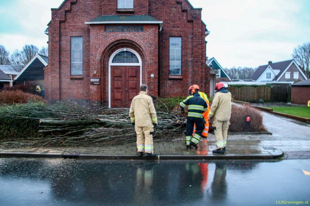 Storm: Boom omver bij Baptistenkerk Siddeburen
