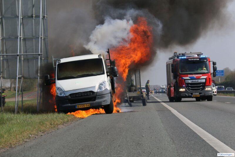 Bedrijfsauto in lichterlaaie op A7 bij Winschoten(update)