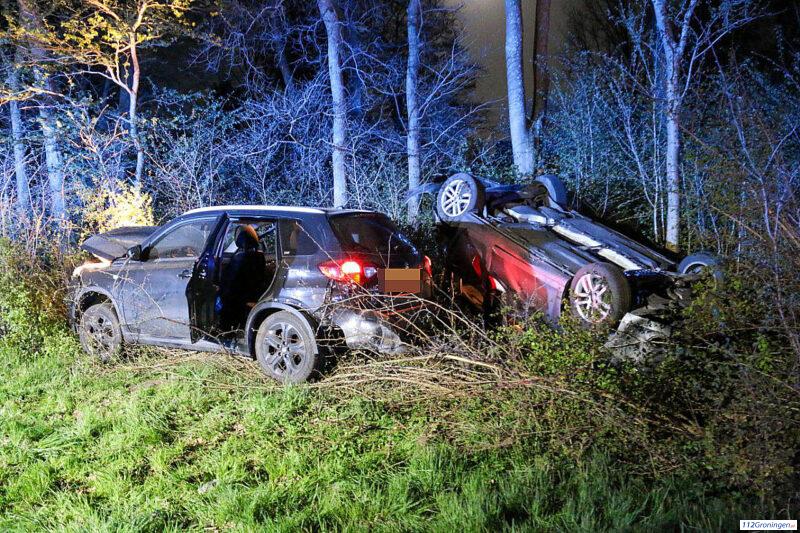 Auto raakt op de kop bij ongeluk in Oude Pekela