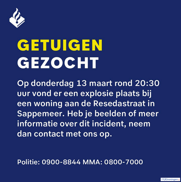 Sappemeer – Bewoners van de Resedastraat in Sappemeer zijn opgeschrikt door een explosie zo meldt