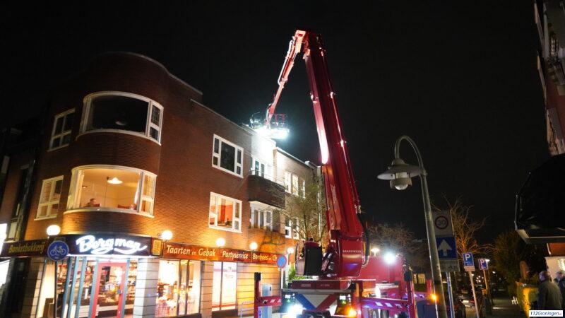 Groningen – Op het dak van banketbakkerij Borgman aan de Verlengde Hereweg zijn vrijdagmiddag tijdens