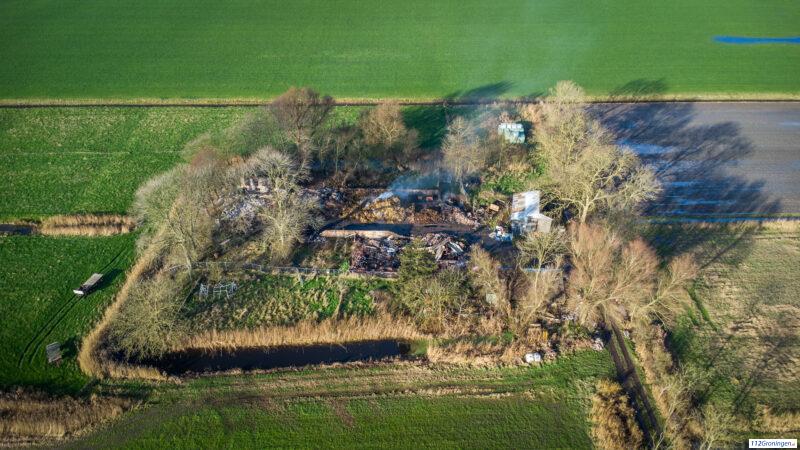 Leegstaande boerderij in Ten Boer volledig afgebrand (video)