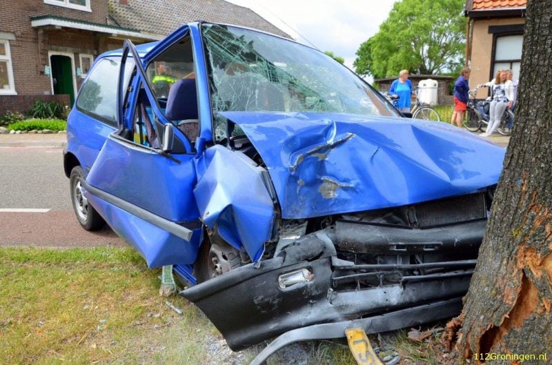 Auto botst frontaal op boom
