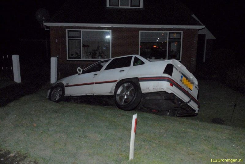 Een automobilist is zaterdagavond door de gladheid verrast op de Parkweg in Opende.