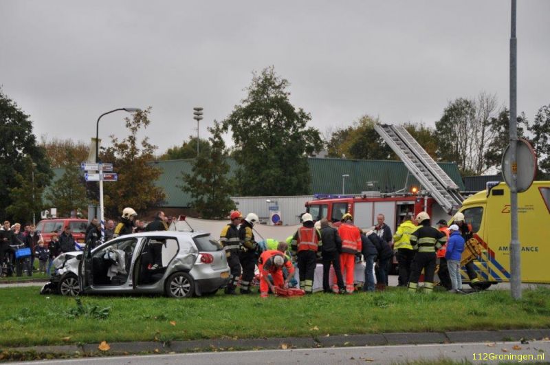 Bij een aanrijding tussen twee auto's op de Middendijk zijn zaterdag aan het einde van