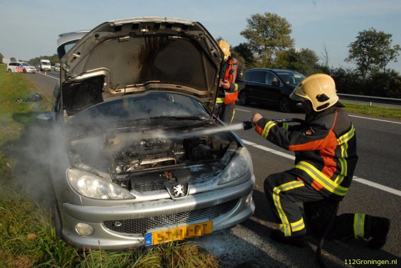 Autobrand snel geblust op A7 bij Marum