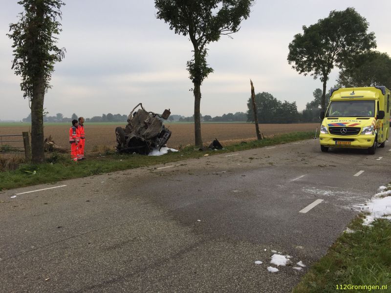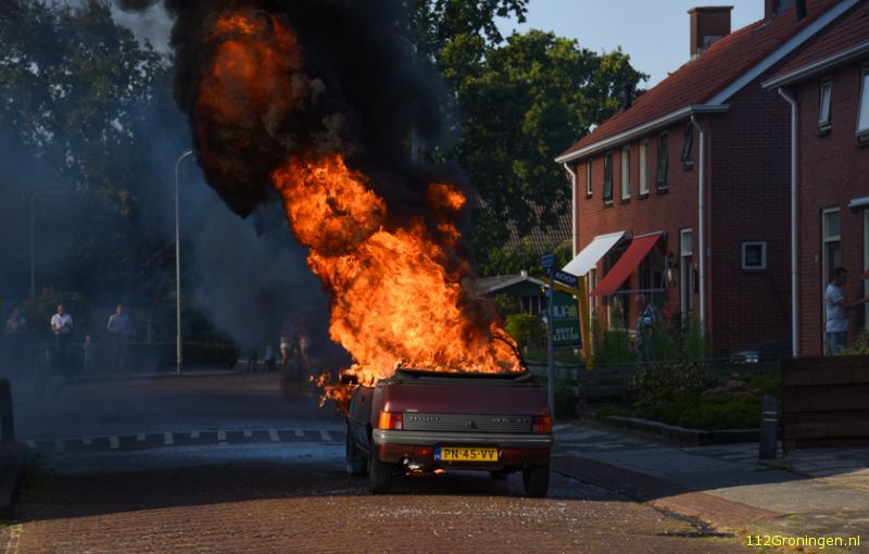 Aan de Vendelstraat in Heiligerlee is donderdagmiddag een auto volledig uitgebrand.