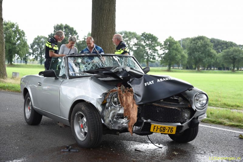 Aan de Zuidlaarderweg in Noordlaren is zaterdagmiddag om 15:07 uur een oldtimer tegen een boom