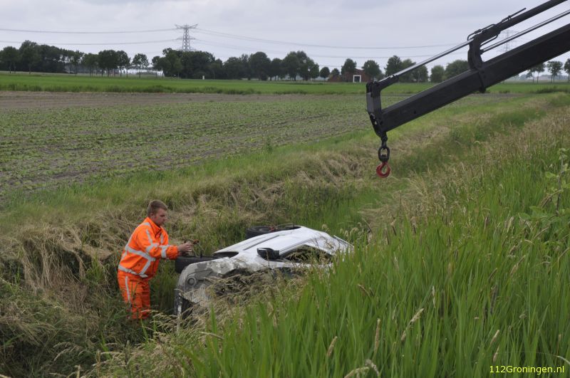 Auto op de kop na ongeluk in Zuidbroek (Video)