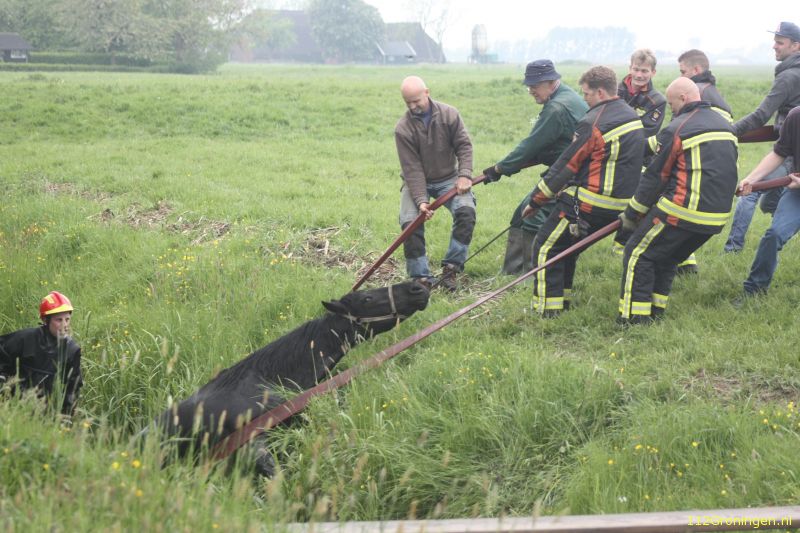 Vanmorgen even voor 12 uur werd brandweer Winsum opgepiept voor een paard te water aan