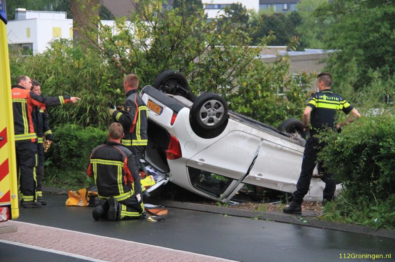 Auto over de kop door vermoedelijk stoeprand (Video)