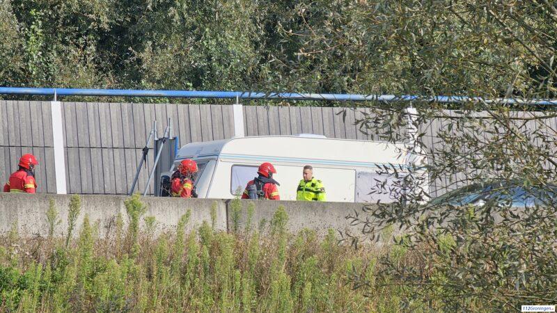 Groningen – Op de afrit van de A28 bij Groningen-Zuid heeft een caravan vlam gevat.