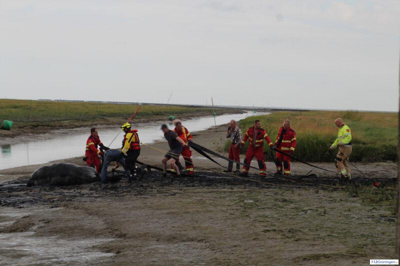 Brandweer redt paard uit vaargeul in Noordpolderzijl
