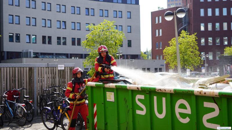 Groningen- Onder de N7 aan de Osloweg heeft maandag op dinsdagnacht een bouwcontainer vlam gevat.