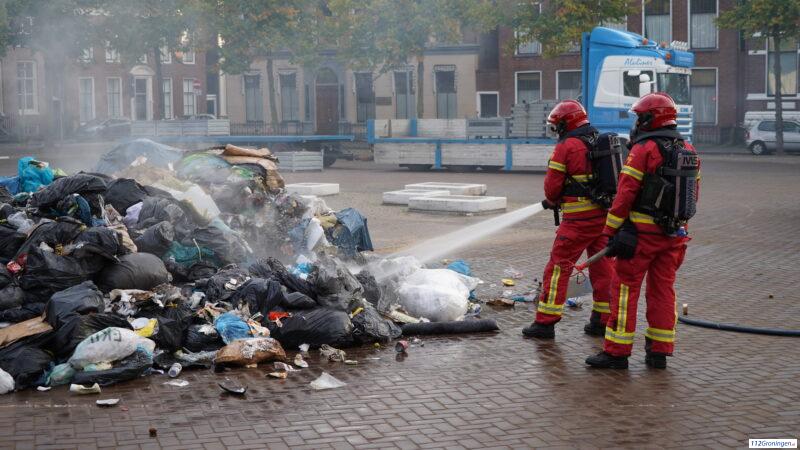 Vuilniswagen dumpt inhoud op Ossenmarkt vanwege brand
