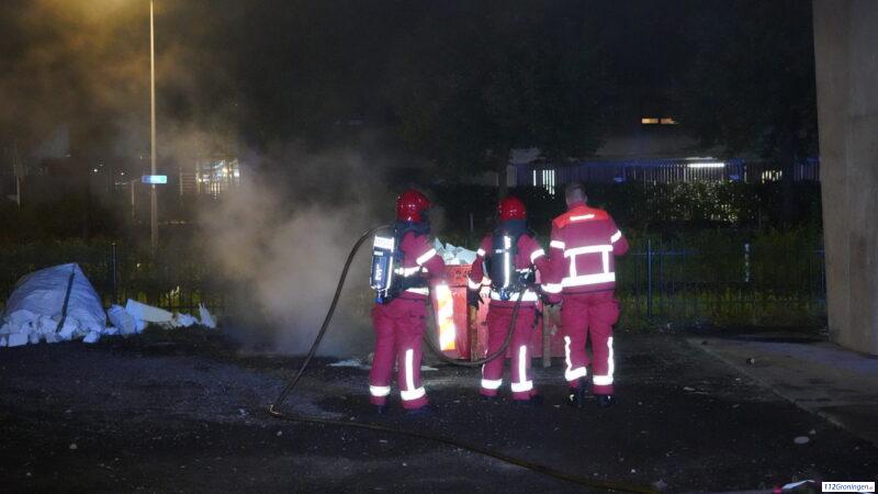 Groningen- Onder de N7 aan de Osloweg heeft maandag op dinsdagnacht een bouwcontainer vlam gevat.