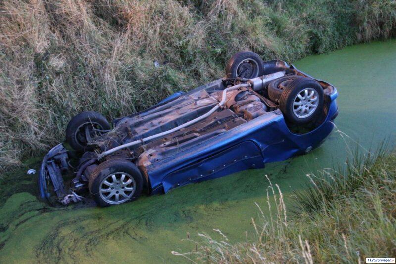 Midwolda – Aan de Nieuwlandseweg bij Midwolda is zondagavond een auto op de kop in