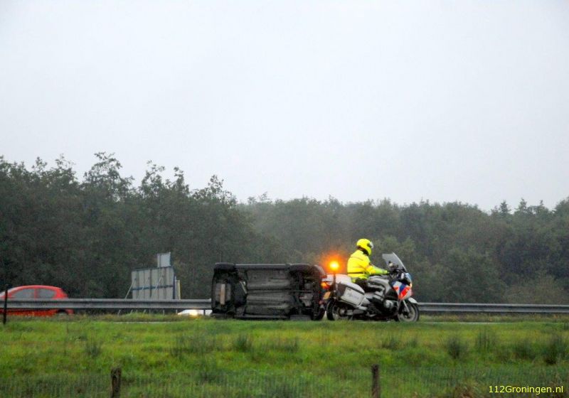 Auto verwoest op A7 bij Hoogkerk (Video)