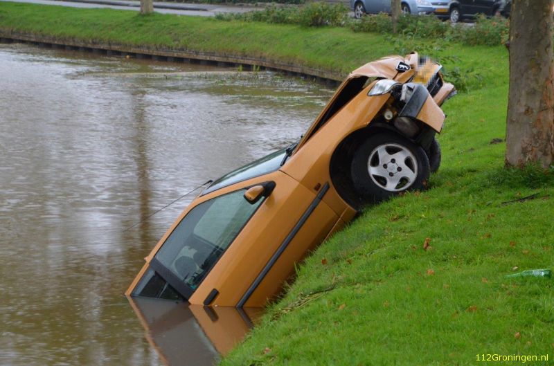 Auto raakt te water bij Oude Pekela