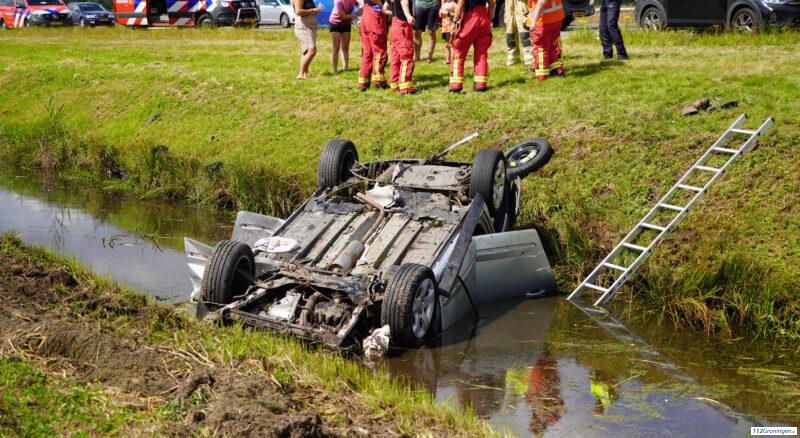 Voertuig raakt van de weg en belandt naast de A7, ernstig gewonde