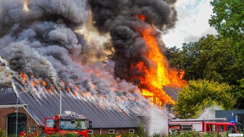 Grote brand verwoest boerderij in Godlinze: Schuren en woonhuis in vlammen op (video)