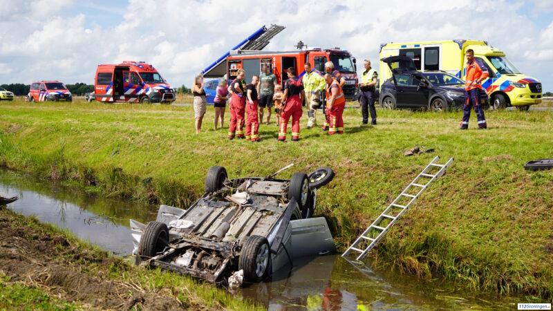 Voertuig raakt van de weg en belandt naast de A7, ernstig gewonde