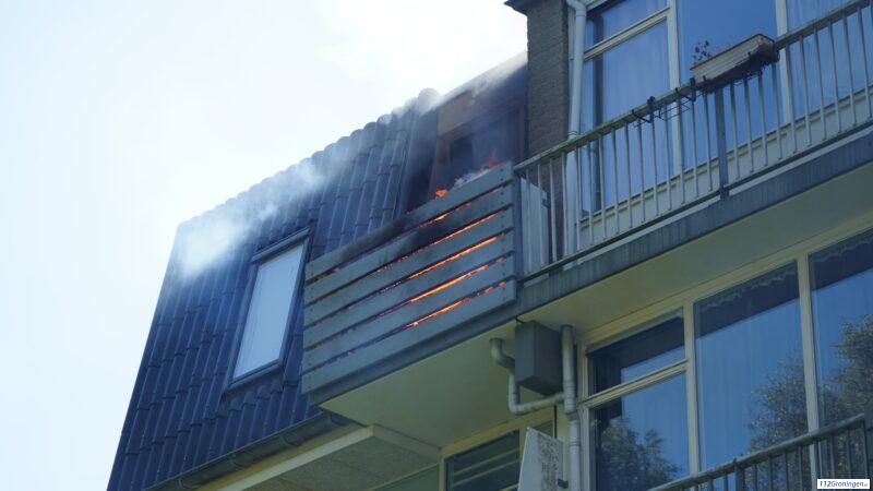 Vlammen op balkon aan Goeman Borgesiuslaan