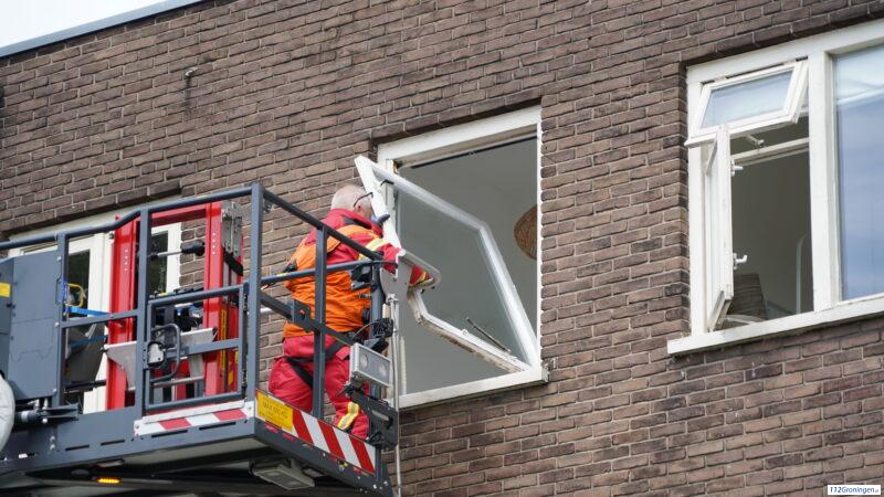 Groningen- Aan een woning aan de Dirk Huizingastraat is dinsdagmiddag is een raam los gewaaid