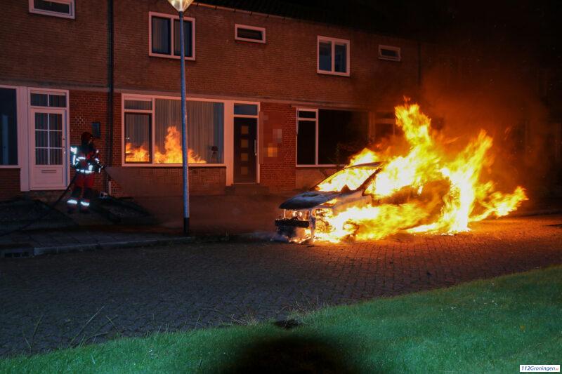 Winschoten- In de nacht van dinsdag op woensdag is een auto aan de Jacques Perkstraat
