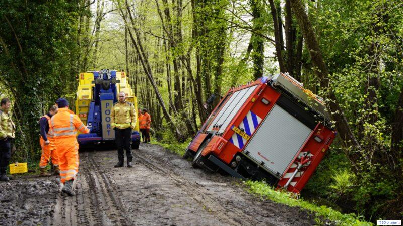 Roden – Bij de Mensingheweg in Roden is vrijdagochtend een brandweerwagen naast der weg geraakt.