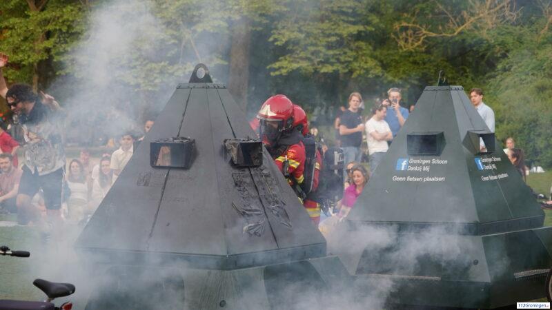 Groningen- Onder gejuich van een volle zonneweide in het Noorderplantsoen wist de brandweer woensdagavond haar