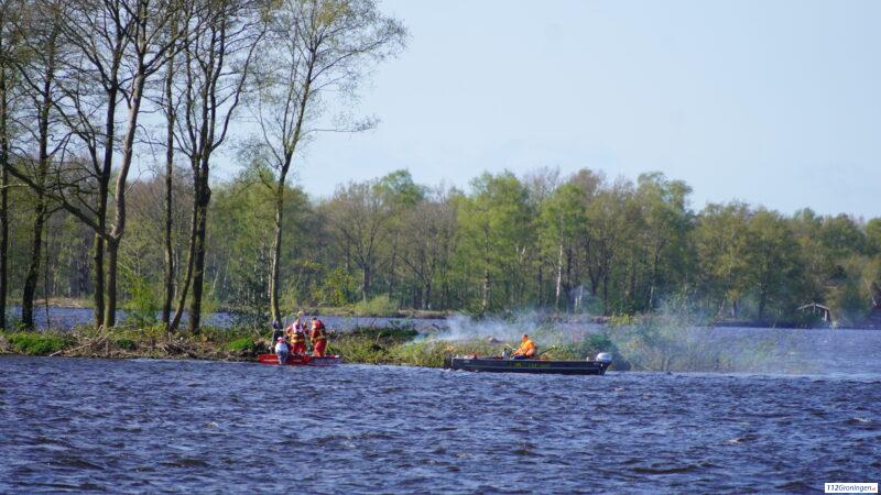 Buitenbrand op eilandje in het Paterswoldsemeer