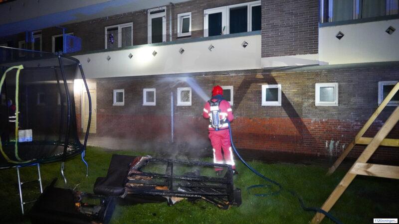 Bankstel in de brand onder flatgebouw in Groningen