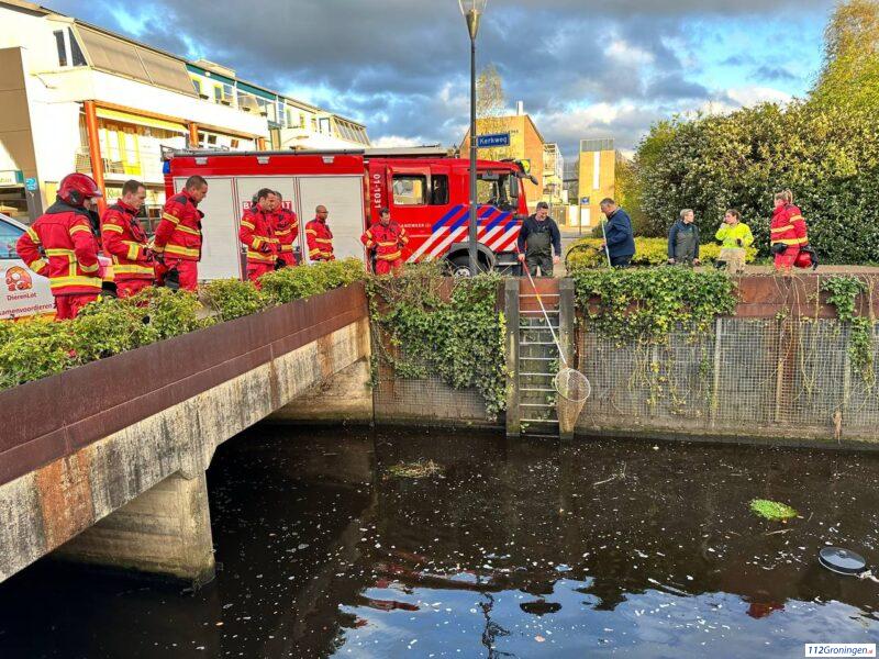 Dierenambulance en brandweer opgeroepen voor eendjes te water in het centrum van Leek