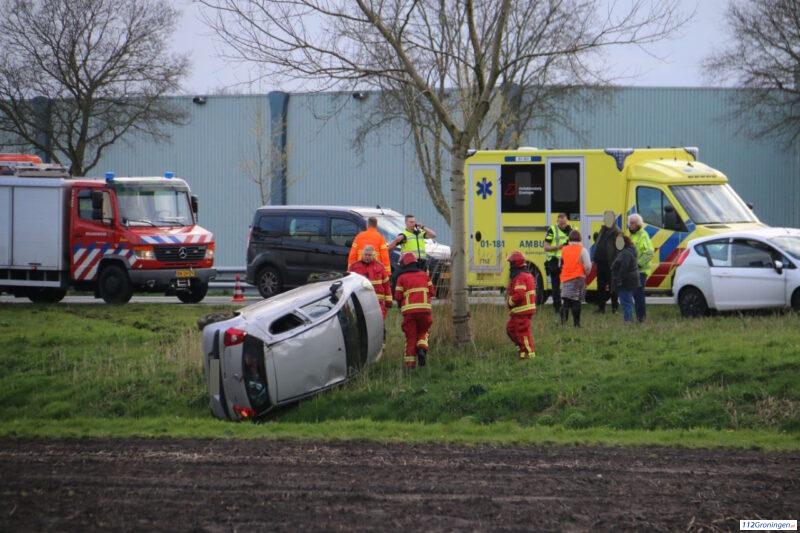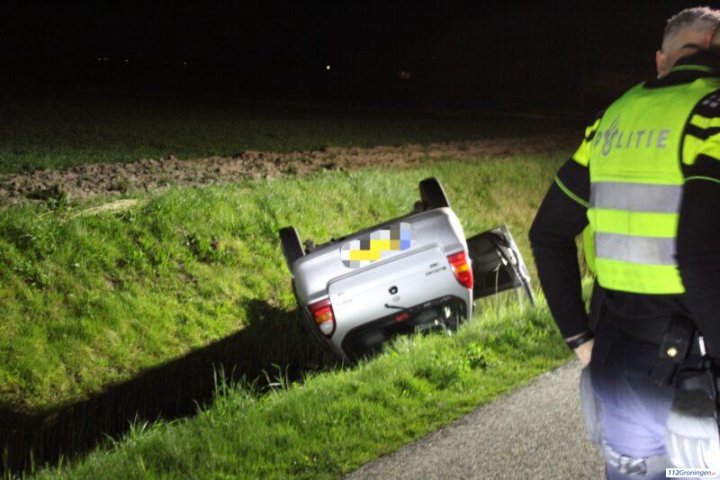 Auto op de kop in de sloot bij Garsthuizen