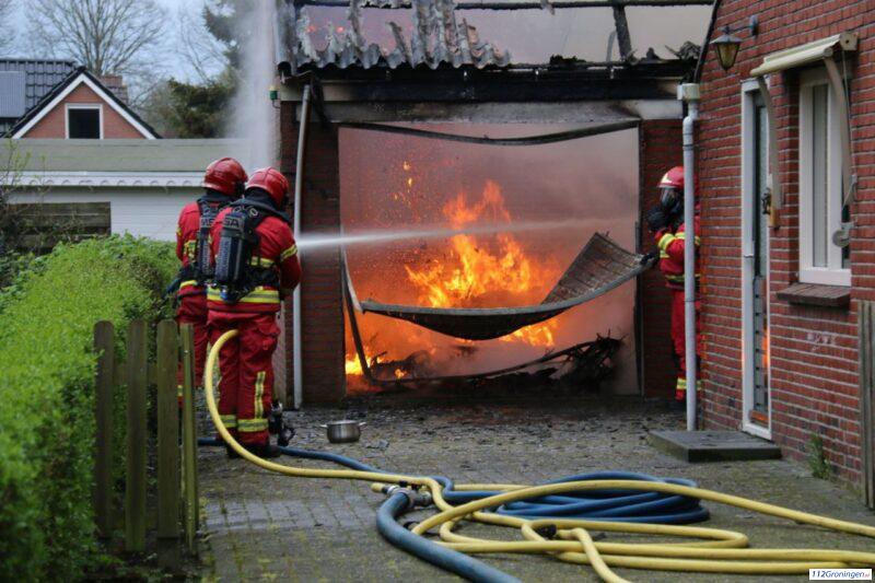 Forse brand legt garage in de as bij Bellingwolde, asbest vrijgekomen