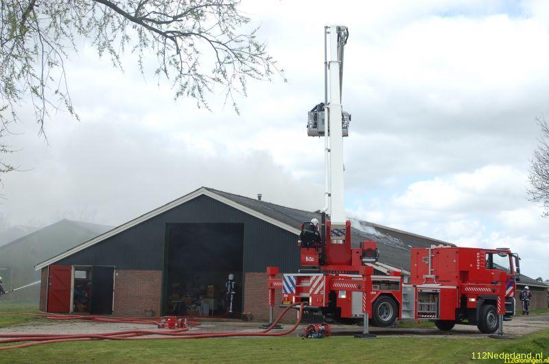 Bij een uitslaande brand in een loods aan de Hiddemawei is zondagmiddag een grote hoeveelheid