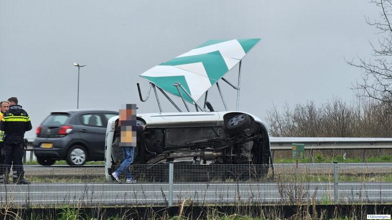 Beerta: Auto belandt op kant bij eenzijdig ongeval